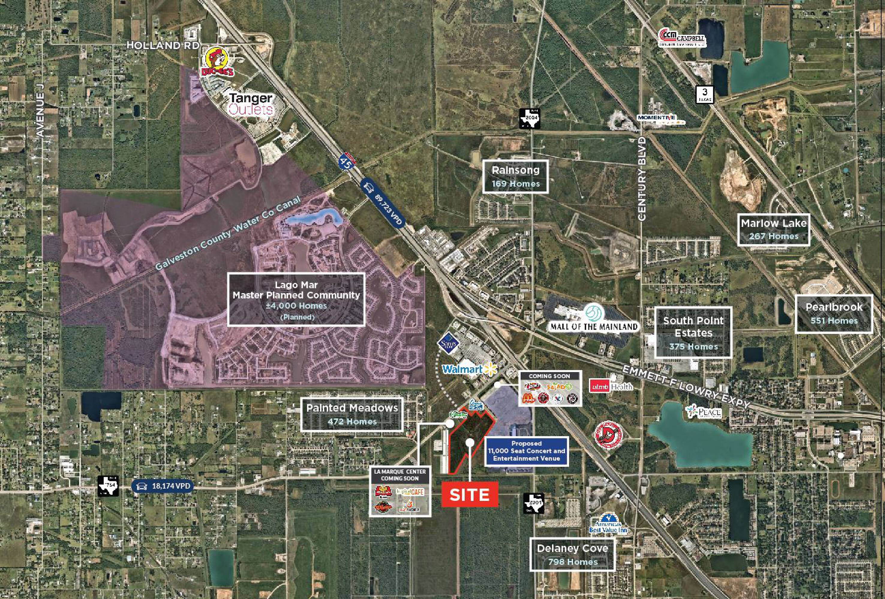 - Neighboring tenants: Target, La Marque High School, Walmart, South Belt Medical Plaza, Murphy Lakes, Tanger Outlets